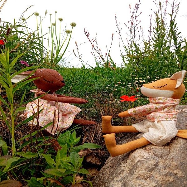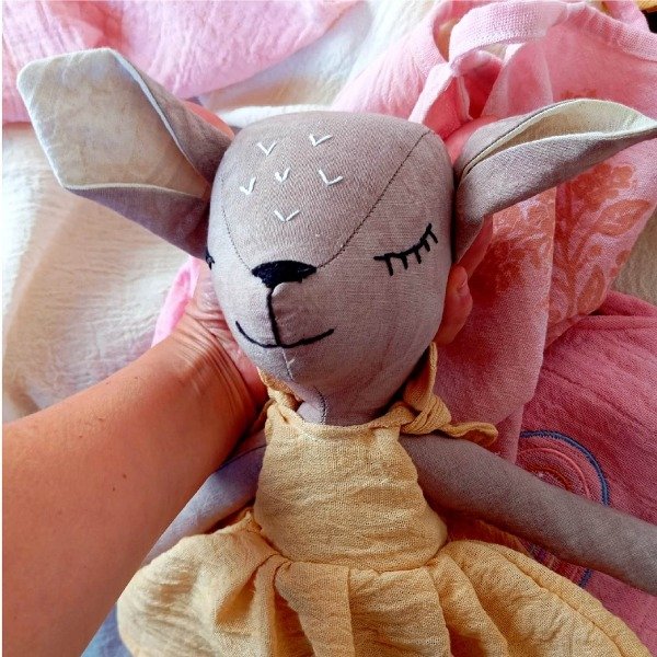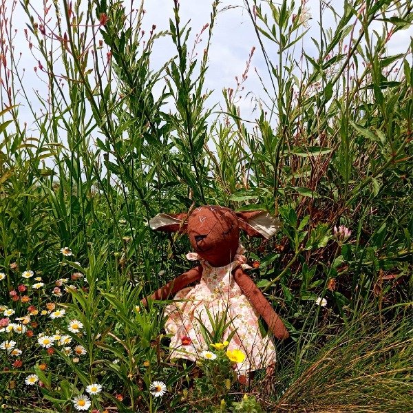 Miden 40 cm de Alto, su cuerpito esta teñido Artesanalmente con Corteza de Chañar dando un tono pardo-grisáceo - y su ropita confeccionada con descartes de telitas, que son tesoros de otras prendas de nuestro Mundo Comino.