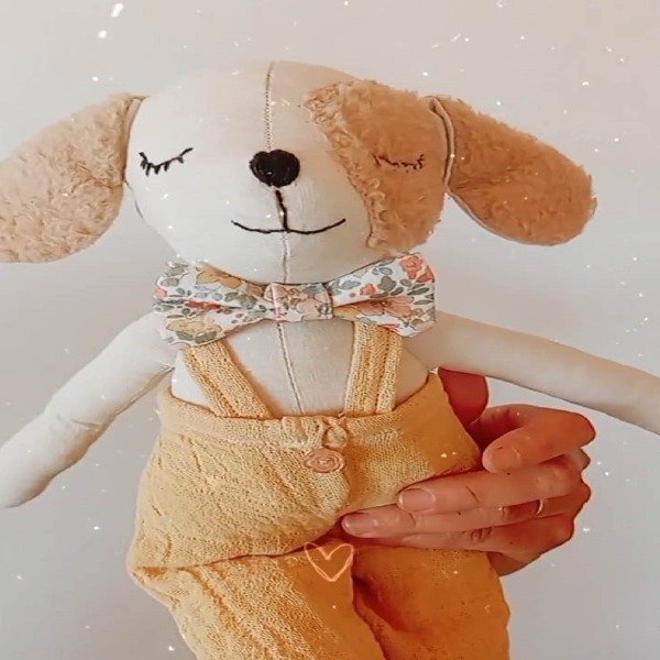 "Papri" es un perrito dulce, compañero y suavecito, Mide 48 cm de Alto, su ropita confeccionada con descartes de telitas, que son tesoros de otras prendas de nuestro Mundo Comino. Relleno con vellón siliconado, detalles en cara y orejas de peluche suavecito.